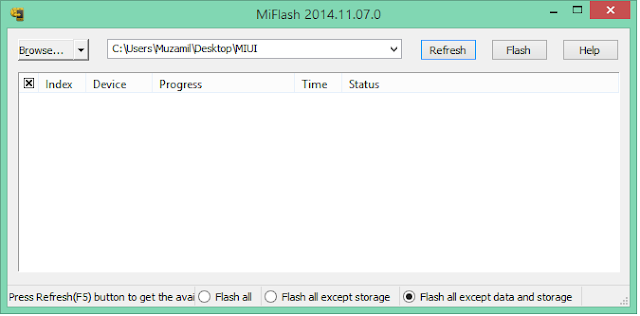 - Ketuk tombol Browse pilih direktori tempat file Fastboot ROM diekstrak Lalu ketuk tombol refresh.